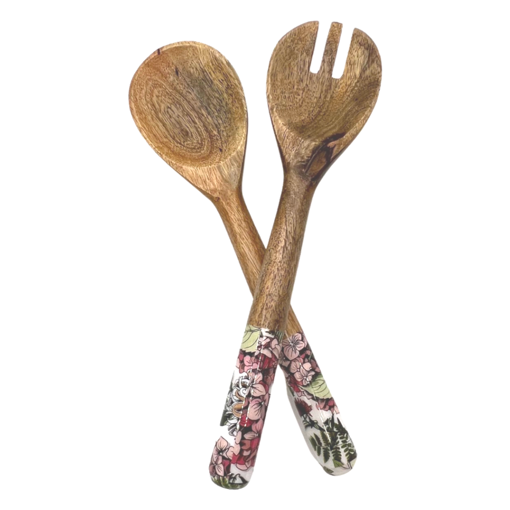 And this modern 'pink hydrangea' print with its' pink and green tones also adds a pop of Spring/Summer! Matching salad servers complete the look!